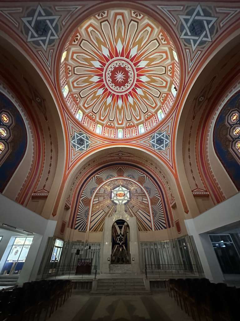 The next morning, we walked as one to The Great Synagogue of Tunis, its grand façade and arched blue windows rising gracefully above the quiet streets. Built in the early 20th century, the synagogue’s beauty speaks of a time when Tunis’s Jewish community numbered in the tens of thousands. Inside, the sanctuary shimmered with light filtering through stained glass, the walls echoing with the prayers of those who once filled every seat. Now, only a handful remain—but their devotion fills the space completely.